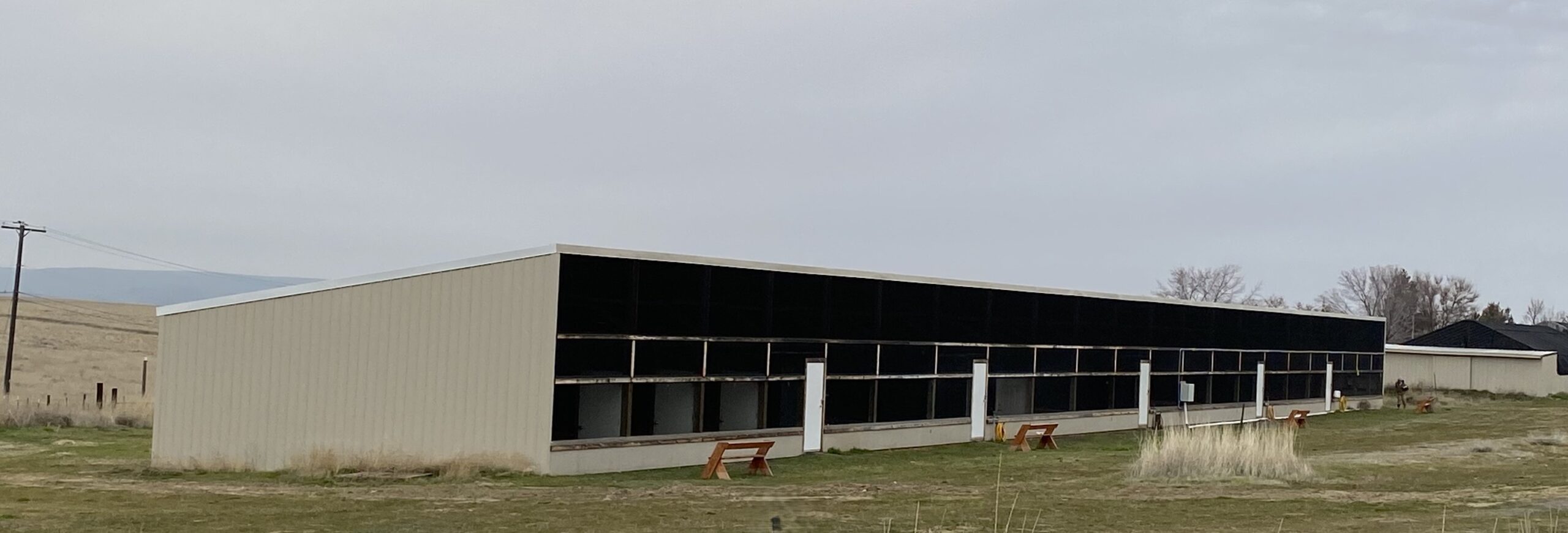 - Shops with rolling doors and equipment parking